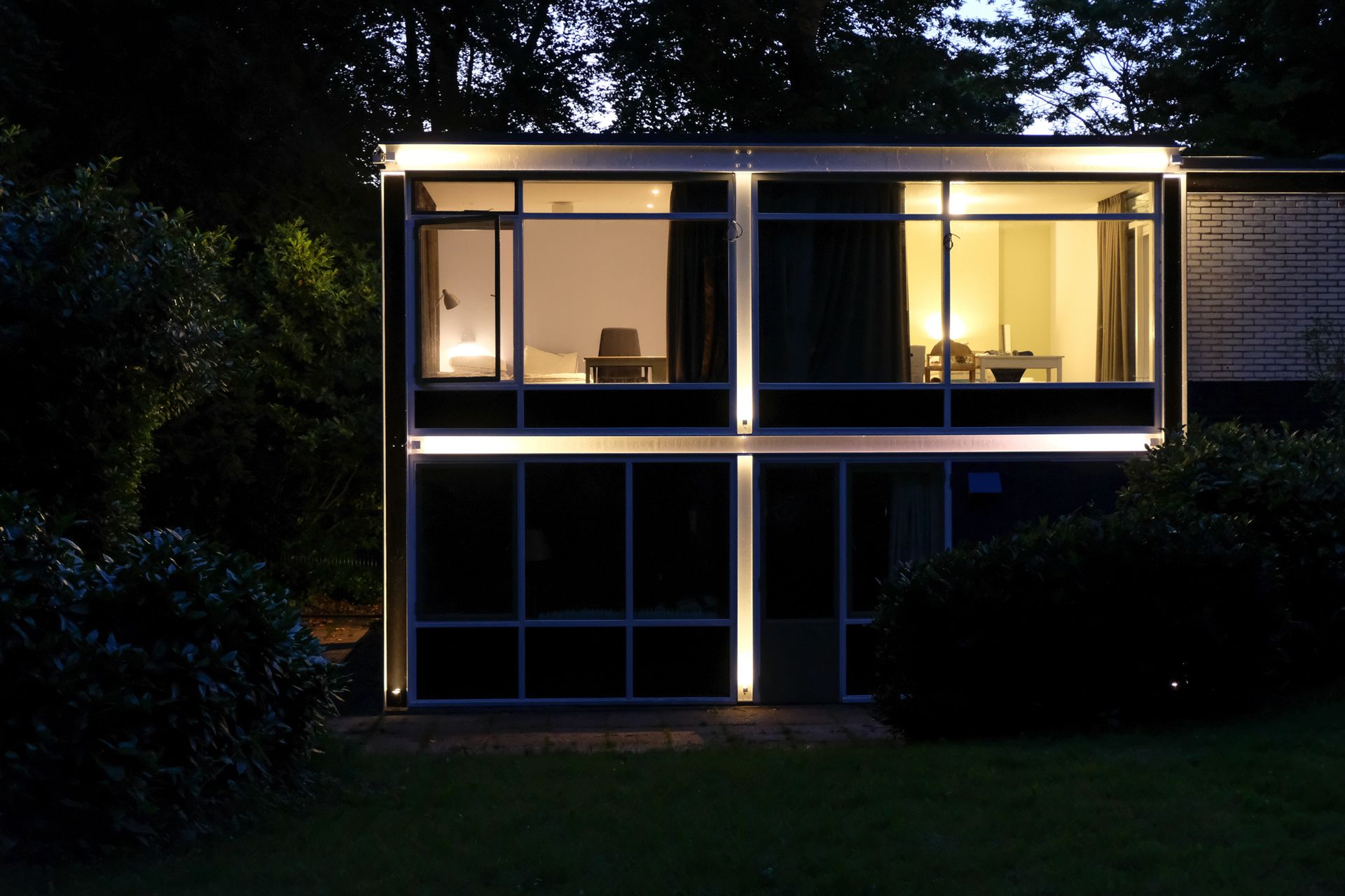Amsterdam based Lighting Design company Spot On was granted the Lighting Design of this landmark Villa by famous Architect Gerrit Rietveld. The in 1960 erected Villa has a signature outdoor frame which the LD accentuated using Linea Light Periskop and Cascade projector and blade fixtures.