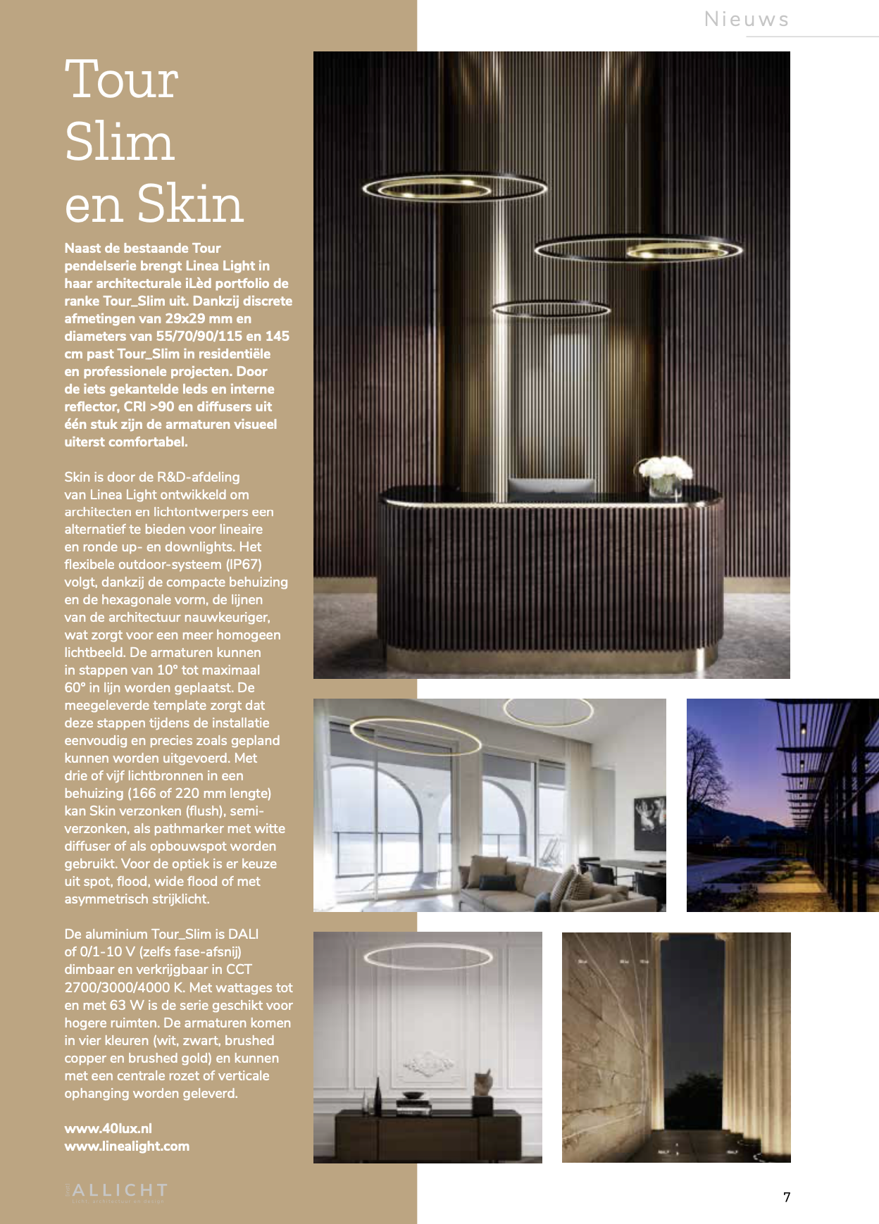 Linea Light Skin and Tour_Slim are mentioned in the leading magazine for Architects, Lighting Designers and professionals for the Benelux Lighting industry. The cover photo is a Lichtkompetenz project in Germany using Skin.